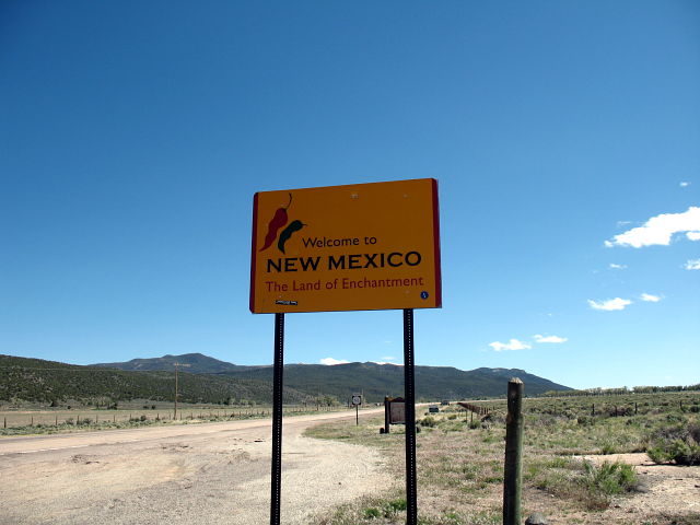 There's not a lot of traffic on Colorado state route 159, which becomes NM 522. New Mexico doesn't mind; a welcome sign's posted here, too. NM 522 extends from the Colorado border to US 64 north of Taos.